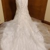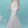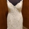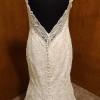 Beaded embroidery trails down the length of this classic sheath gown. A stunning gown with gorgeous straps both front and back that enhance the pretty sweetheart neckline. The unique style in the sheath is very easy to wear and is finished with a nice chapel length train.
