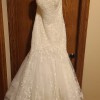 Winding vines overlay the ruched tulle of this strapless trumpet gown. The simple design is great for the detailed lace the gown features. A pretty sweetheart neckline will look stunning on any bride. The gown is finished with a pretty chapel length train.