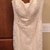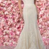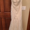 This strapless wedding gown with soft flowing skirt. The gown is gorgeous in the pretty diamond white/nude color.