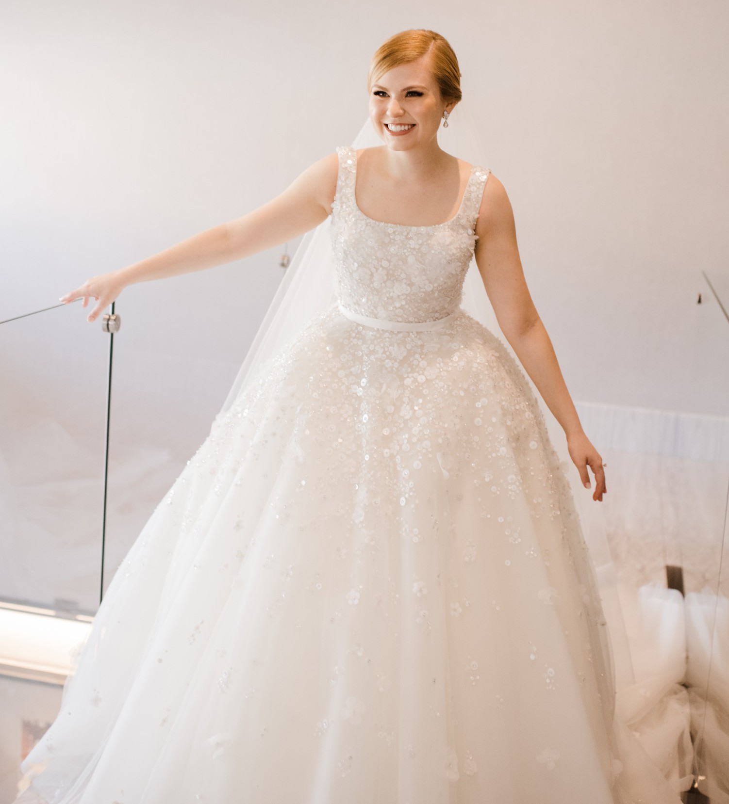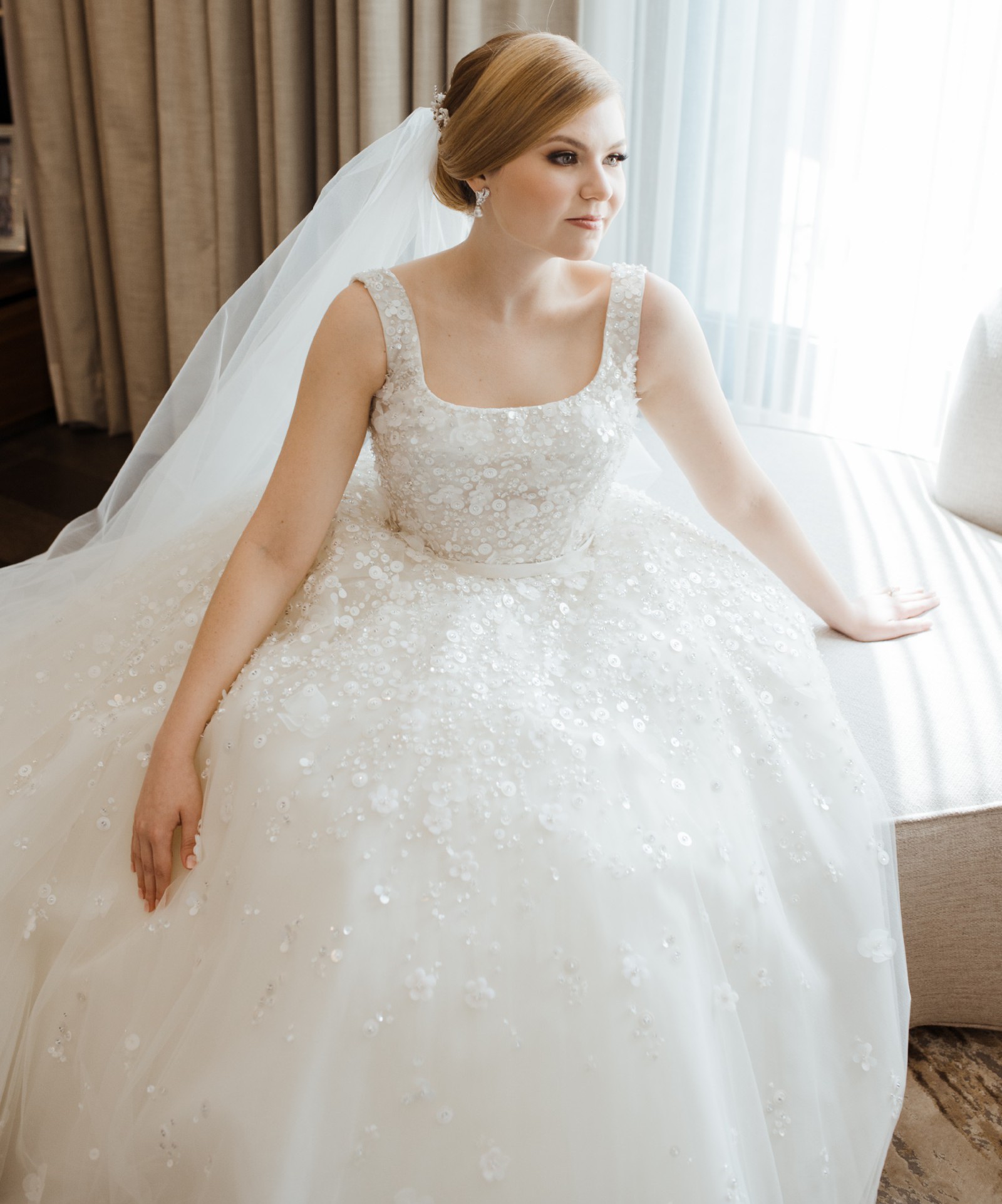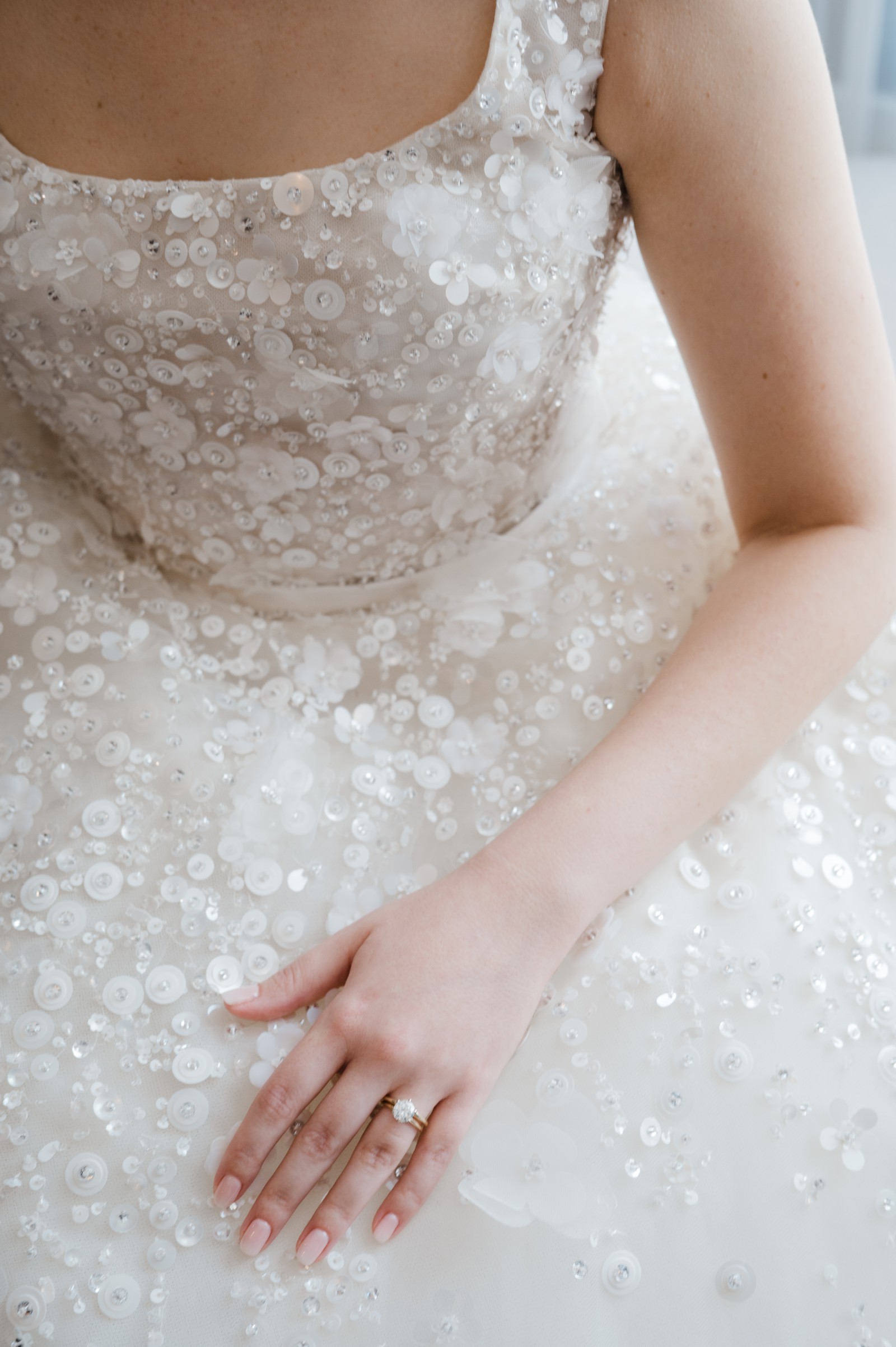 Dress has so many beautiful flower details. Definitely for a spectacular bride. Made for a princess.