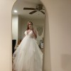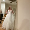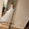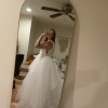 This is the first wedding dress I tried on and then bought off still white. The first pics are the sample I tried on. The ones in the house are the dress I’m selling. The person I bought it from had never worn it and performed no alterations. I also have only tried it on in my house. No alterations or flaws. I’m using the previous owner’s measurements on the listing since that’s what they went off to order the dress in the first place. It’s very large on me, but I could have altered it down two sizes probably. It’s amazing, I’m just going with a completely different style dress. Nonsmoking home. Please make an offer!