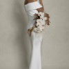 The Venice Gown is constructed from a gorgeous textured crepe fabric with a fitted bodice for structure. The elegant strapless neckline features a wraparound cuff with back button and concealed zip fastening. The gown features a flattering thigh-high split to showcase your wedding shoes.