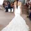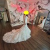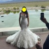 Mae by Ines Di Santo is a dramatic wedding dress that features a luxurious lingerie elongated French silk bodice with multi-layered French lace asymmetrical textured trumpet skirt. The bodice has boning throughout to provide a structured and comfortable fit. The straps are thin and provide the perfect amount of support. This dress will provide anyone the perfect hourglass silouette.