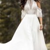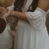 The June gown is really a 2-in-1 style with its detachable sleeves. Truly customizable, the sleeves can be altered to fit whatever look the bride wants. Most brides choose to wear them loose and attached to the bodice for a shoulder-baring look. But, you can also detach the sleeves and have them altered to fit around your bicep for a custom arm cuff. Or, ditch the sleeves altogether!