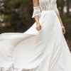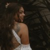 Made of intricately woven boho lace and smooth crepe, this magical wedding dress is anything but ordinary.