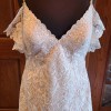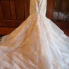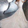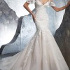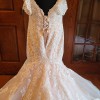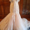 Metallic Embroidered Medallions and Appliqués Accent the Bodice and Skirt on This Net Mermaid Wedding Dress. Moonstone Beaded Straps and Detachable Flutter Sleeves Complete the Look. The gown is gorgeous in the pretty ivory/creme color.