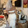 You can remove the skirt for your “reception” look which is a bit more fun and sexy, with the beautiful corset back and slit fully showing. The dress is a comfortable material, I could sit without it feeling tight but it held its shape and was easy to move in for dancing.