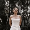 This Evie Bodice and Emily Skirt wedding dress by Karen Willis Holmes made my special day truly magical. Crafted in a stunning ivory, this sheath silhouette accentuated my figure beautifully while the elegant strapless design allowed for effortless movement and a touch of sophistication. The mid-back detail adds a subtle yet alluring touch that beautifully frames the body.