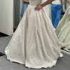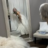 NEW WITH TAGS! If you are ready to hear your guests gasp in awe as you walk down the aisle, this is your dress. You may even consider ordering them sunglasses as favors—the glittering ballgown will blind them! When I tried it on, it was so shimmery that I felt like I was wearing some type of technology. It didn’t look real! This gown has champagne undertones, an asymmetrical ruched bodice, and a zipper with inner elastic closure with buttons trailing to hemline. You will feel like a snatched, sparkling goddess! The train is cathedral-length, and it’s brand new with tags. I’ve tried it on once. I will ship it with a brand new Shipping costs are estimates and will vary, but I will make sure to offer the best price possible to ship out this beauty to your doorstep. Make me an offer!