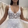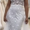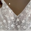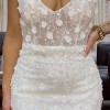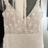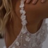Lenni: flirty, fun, and flattering! With a subtle plunge neckline, 3D floral sequined lace over Chantilly lace, soft straps, and a detachable floral belt, she’s the perfect bridalream.