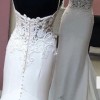 This stunning Allure Bridals dress is a beautiful reflection of my wedding day dreams, and now it’s ready to make someone else feel equally magical. The fit and flare silhouette hugs all the right curves, creating an elegant and timeless look that transitions effortlessly from ceremony to celebration. The inviting V-neckline beautifully frames the décolletage while the low back adds a touch of allure, enhancing the overall romantic vibe of the dress.