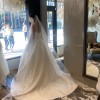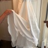 Ivory. Zip-up back with fabric buttons. No beading. Pockets.