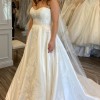 Classic details meet modern magic with this perfectly of-the-moment ballgown from Essense of Australia. A soft, sweetheart neckline graces the top of the bodice for a smooth and open decolletage--highlighting your face and collarbone effortlessly. Gorgeous Matte Mikado fabric creates the perfect base for this grand silhouette, featuring a strong pleated skirt, pockets and subtle hints of floral lace appliques for a touch of dimension. Fabric-covered buttons start from the top of the high-construction back and flow to the base of the elegant train for the finishing touch.