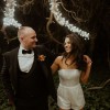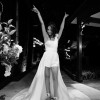 Eva Lendel Lynn - strapless sequin playsuit with long overskirt and train.