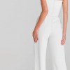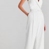 VANESSA is a tuxedo-inspired jumpsuit, crafted from exclusively designed crepe with a deep V-neckline featuring a structured lapel over the bust, a corseted bodice, wide-leg and long-length tailored pants with leg pleats, silhouette-enhancing seam detailing, and functional besom pockets.