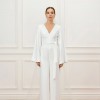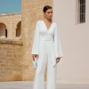 Jumpsuit with a v-neckline, keyhole back, long belle sleeves and a self-tie waistband.