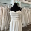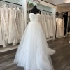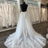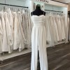 A unique bridal jumpsuit with the option for 2 looks in 1 with a sparkle tulle overskirt! Made of crepe, this jumpusit has ruching in the bodice, spaghetti straps, and a high waistline.