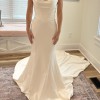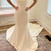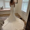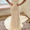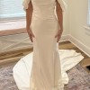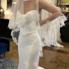 This stunning Madi Lane wedding dress, known as Leo, embodies elegance and romance for the modern bride. Tailored in a size 4, this trumpet silhouette effortlessly hugs your curves, creating a mesmerizing shape that complements every move you make. The off-shoulder neckline adds an air of sophistication, showcasing your collarbones and shoulders while maintaining a classic touch.