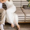 Silk column skirt with two layers of soft tulle. We customized with the designer to remove the lace applique that comes with the original Theo skirt. It is a silk ivory slip skirt with two layers of the Danielle Frankel tulle overlay. There is a 12 inch slit in the back. Invisible side zip closure.