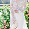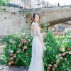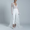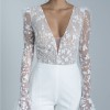 Selling the stunning Rime Arodaky Gavreel jumpsuit - a more recent twist on the best selling Patsy jumpsuit (the main difference is the front and back V neck and appliqués on the train). I wore this for my wedding welcome event and got so many compliments! It is a size EU38 but I got it tailored down to a size 36 to fit me. My measurements at the time were [removed] though there is still some give. There is some dirt on the end of the train (look at the last photo) though should come off with a proper dry clean. Such a stunning jumpsuit and I hope someone else can make good use of it! From the designer: Long sleeve jumpsuit with crepe cady straight pants. Deep V-neckline on the front with illusion tulle modesty and nude tulle lining. The top is made entirely of tulle embroidered with 3D flowers and beads. Ruffles at the wrists and gathers on the shoulders create a slight volume. V-shaped open back, with lace train with 3D flowers and sequins applied in a gradient way.