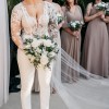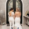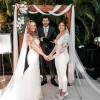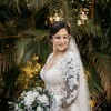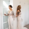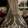 Custom made white bridal jumpsuit. Top is made with lace, bottoms are a double layer stretch fabric. Veil has matching lace detail. Worn once for wedding and has been dry cleaned. Since it is custom made, it does not have a size. Made to fit someone who is approx. 5'5", 145lbs, and size 6 pants. Originally paid $5,000.