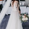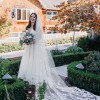 Turn heads on your big day in this stunning A-line wedding gown with a dramatic plunging neckline, floral appliqué bodice, and soft flowing tulle skirt that moves like a dream. Worn once and professionally cleaned, this gown is lightweight, incredibly comfortable, and flatters a range of body types.