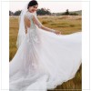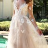 An enchanting gown fashioned from re-embroidered Chantilly lace and airy tulle offers a fairy-tale look for your most special day. The A-line silhouette flatters every figure, while an open back and sweeping cathedral train ensure that your exit is as memorable as your entrance.