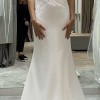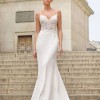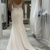 Sparkling crystal & pearl threads drape effortlessly from the shoulders, whilst a sheer bodice is complimented by modern ornate lace and a soft crepe skirt, finished with an on-trend cut-out train.