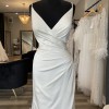 This enchanting Pronovias gown is the epitome of elegance and allure, perfect for the bride who wishes to make a statement on her special day. Crafted in luxurious ivory satin, this mermaid silhouette beautifully hugs the body and flares out just below the knee, creating a captivating hourglass shape. The V-neckline enhances the décolletage, while the low back adds a sultry touch, ensuring all eyes are on you as you glide down the aisle.