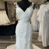 This enchanting Morocco wedding dress by Pronovias exudes elegance and sophistication, perfect for the bride who wants to make a lasting impression. Crafted from exquisite ivory lace, this floor-length mermaid gown clings gracefully to your curves while offering a flattering silhouette that enhances your natural beauty. The V-neckline adds a touch of allure, ensuring you feel both beautiful and confident on your special day.