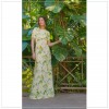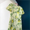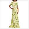 Our vibrant lemon and floral printed crepe brings a sense of the Amalfi coast to this beautiful floor-length gown. A seam at the natural waist creates a beautiful transition into a soft a-line skirt, while short-sleeves and a jewel neck-line provide an effortless feel. The back hem extends into a subtle sweep, adding a touch of graceful movement with every step.
