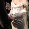 This stunning Vivienne Westwood Nova Cora dress is a true masterpiece that made my special day unforgettable. The elegant fit and flare silhouette hugs the body perfectly, creating an incredibly flattering shape that accentuated my curves beautifully. With its luxurious ivory satin fabric, this dress shimmers in the light.