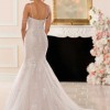 Classic brides will love how elegant and refined they feel in this lace wedding dress by Stella York. This designer gown made of lace, tulle and Regency organza fits the body into a modern fit-and-flare silhouette.