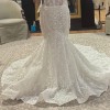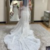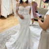Beautiful mermaid gown, scattered with hand-embroidered flowers, pearls, and crystals. Stunning, feels like a million dollars.
