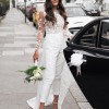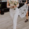 This is truly the most beautiful and comfortable jumpsuit I’ve ever worn, and I’m so excited to pass it along to the next bride. I wore it for just two hours during my elopement, and it remains in great condition. There is a small tear in the train, but it’s not noticeable when wearing. The tag reads size 2, but it has been expertly tailored to fit like a true size 0. For reference, I’m [removed] lbs, and wear a 32C. The fit was perfect, and the design is flattering on both petite and taller frames. I received so many compliments on this stunning piece, and I’m sure you will love it just as much!