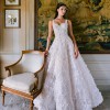 This Candlelight wedding dress by Monique Lhuillier embodies romance and sophistication, perfect for the modern bride who desires to make an unforgettable entrance. The enchanting A-Line silhouette elegantly skims over the body, creating a flattering shape that allows for effortless movement on your special day.