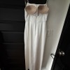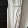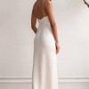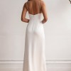 The Lorena satin dress is a chic choice for any of your bridal events. She features a sleek straight neckline and delicate spaghetti straps. Angled pleats add interest to the bodice and sleek column skirt, and the faux wrap skirt opens to reveal a sultry slit.