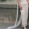Theo skirt: Silk column skirt with two layers of soft tulle adorned in hand cut corded and chantilly lace applique. Invisible side zip closure.