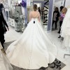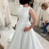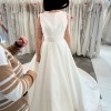 Manufacturer Description: This is a classic Mikado ball gown. The Sabrina neckline is complemented with a flattering inset cummerbund while the back gives a touch of glamour with silver embroidery and intricate beading. The style is finished with pockets and crystal buttons cascading down the cathedral length train.