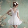 I bought this dress at Bridal Reflections in NYC on 5th Ave for my rehearsal dinner but canceled my wedding. It is the perfect, feminine little dress! It has little flower appliqués all over it and cute bow sleeves that tie on the shoulders. It has a V shaped back also and built in cups so you don’t need a bra.