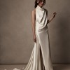 The Sasha gown features a romantic off-the-shoulder neckline, a flattering draped silhouette, and elegant tailoring that defines modern bridal luxury. Crafted from a luxurious silk-wool blend, it drapes beautifully and feels both structured and soft.