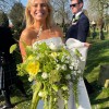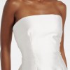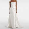 It's made from Ivory satin-twill in an elegant column silhouette and has a beautiful yet subtle pleated train. Frames the body beautifully for understated modern bridal glamour