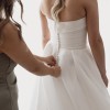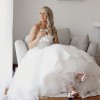 A princess style dress for the modern bride. Created in crisp organza and with a draped sweetheart bodice and deep pockets inside the skirt’s wide pleats. A petticoat adds extra volume for a grand entrance.