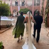 The Stella is bias cut silk wool with a high neck halter gown. There is an invisible zip closure at center back. This dress is masterfully designed to accentuate all the right places and I felt like a movie star wearing it for our wedding in Marrakech. The silk is light but substantial so I didn’t need to wear any shape wear.