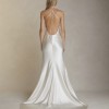 The dress is stunning from far away and up close you’ll notice the beautiful details like the baroque pearl cord ends and the way the neckline perfectly drapes in the front. The cords make it such that you can adjust the neckline higher or lower, depending on your style. The silk wool feels amazing on the body and it moves like water! I bought this dress brand new (made to order) from Loho Bride boutique in Los Angeles and had it professionally cleaned by a company that specializes in wedding gowns and silk fabrics. There are two light spots on the train that they were unable to remove, included in the photos. I absolutely love this dress!