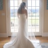 Not altered. Worn once only for about 4 hours for my wedding ceremony (I changed dresses for the reception). Comes with beautiful removable pleated overshirt, off-the-shoulder-straps, and belt. I opted to not wear the skirt or straps so those are completely unused. I loved this dress!! Just feels bad that it sits in my closet.