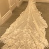 Martina Liana 1305 Wedding Dress – Soft and romantic meets sexy and fashion-forward. 3D organza elements enhance the overall floral design, intermingling with various beadwork and sequin details for a rich shimmer effect. This beading rests elegantly over the stunning lace appliqués throughout the gown to add a dimensional element to the sparkle, which takes this seemingly simple fit-and-flare silhouette to extraordinary heights. The plunging neckline and thin straps mirror the plunging low back and contouring sheer sides for a fresh, modern feel–complemented perfectly by the lengthy, scalloped train for a final touch of classic inspiration and bridal artistry.