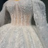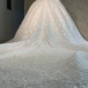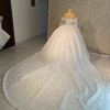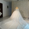 Design Highlights: Romantic Off-the-Shoulder Sleeves with elegant sheer draping that falls over the arms. Fully Beaded & Embroidered Fabric that sparkles with every step intricate from bodice to hem. Structured Corset Bodice that flatters and supports, offering both elegance and a secure fit. Full Ball Gown Skirt with dramatic volume, creating that royal bridal silhouette. Extra-Long Cathedral Train with ornate detailing picture-perfect for your grand entrance and photos.
