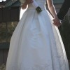 Maggie Sottero Designer Wedding Dress. Two piece corset style wedding dress. Includes shawl, veil, and full skirt petticoat. Tailored to add bustle to skirt. Size 12 but fits like a size 8. Professionally cleaned and preserved.