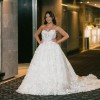 This Monique Lhuillier Versailles dress is the embodiment of elegance and romance. When I first slipped into this beautiful ballgown, I felt like I was stepping into a fairytale. The sweetheart neckline perfectly frames the décolletage, while the low back adds just the right amount of allure. Designed for the bride who wants to make a statement, the gown flows gracefully to the floor, enveloping you in layers of exquisite lace and intricate 3D floral embroidery.
